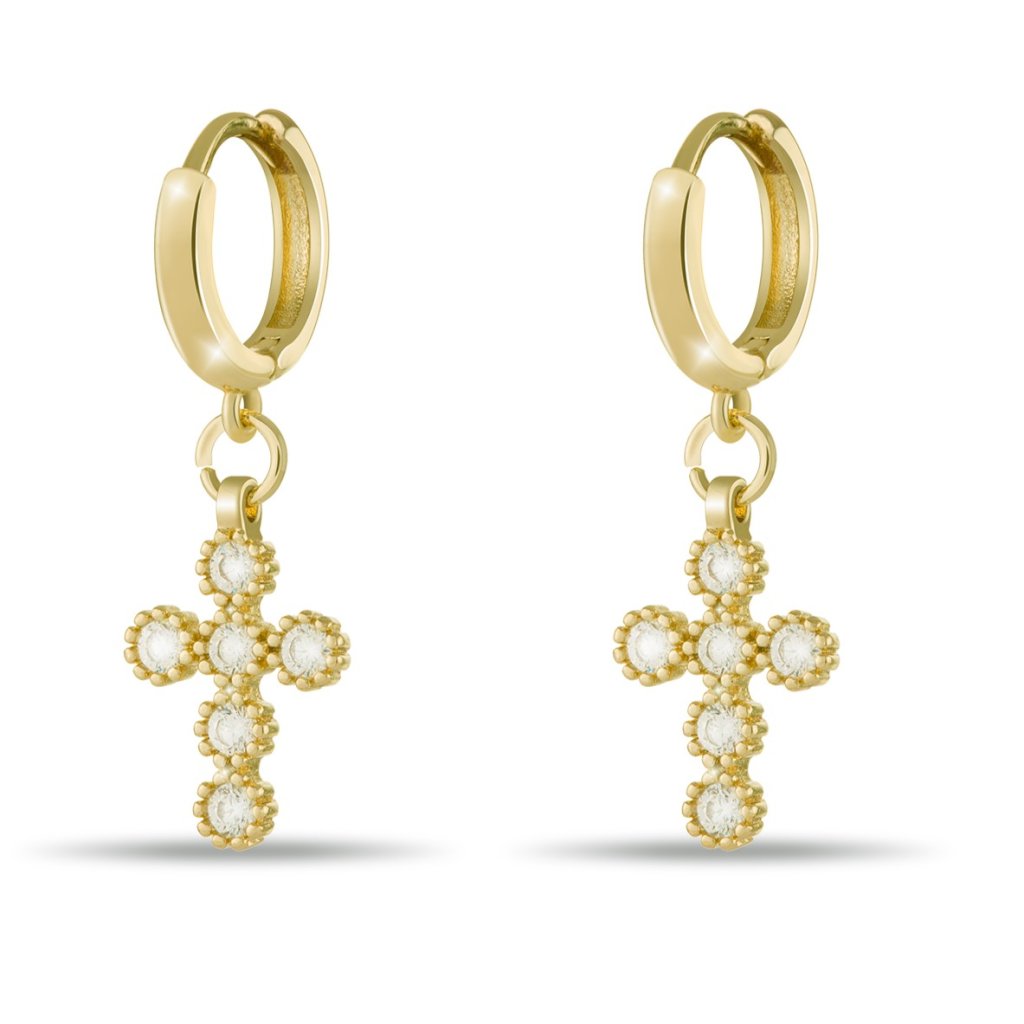 Pozlacené náušnice 14K zlatem do tvaru krížku