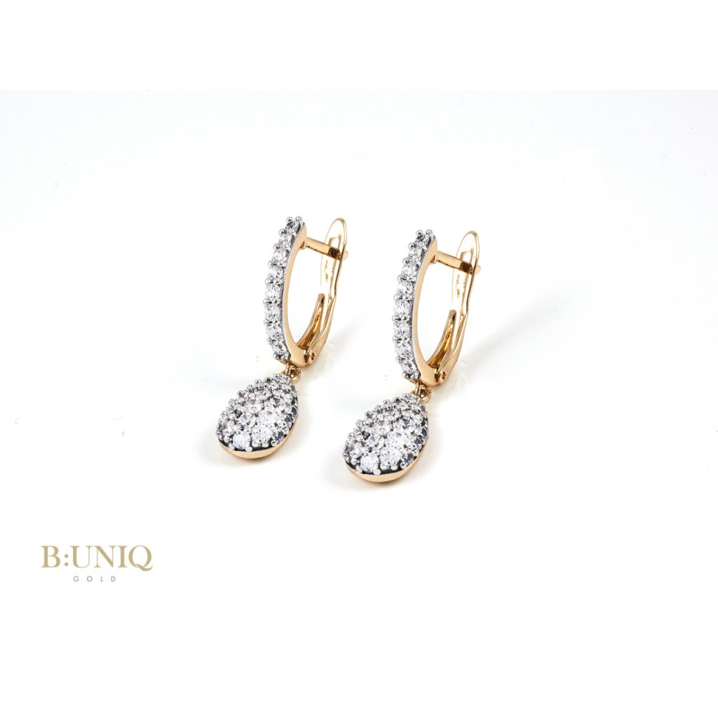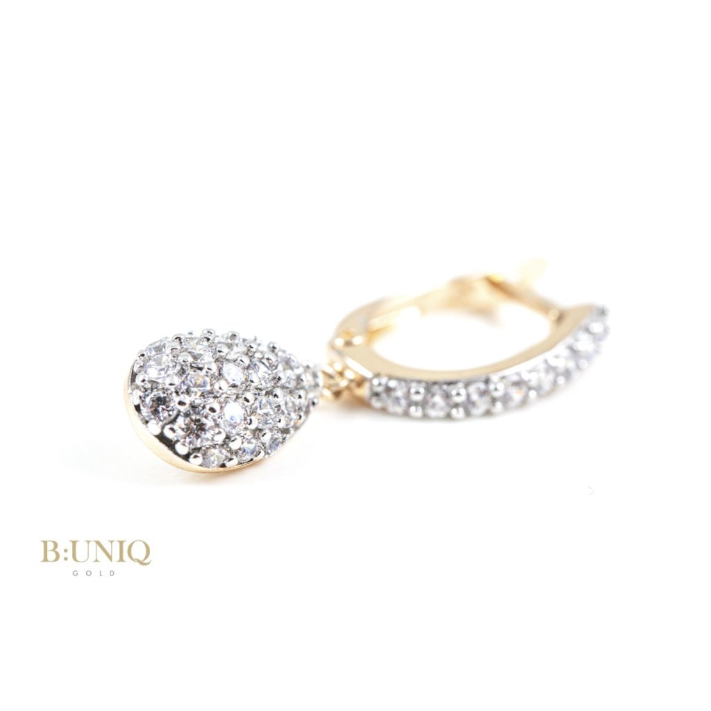 Zlacené dámské náušnice B:UNIQ. Modní dámské náušnice, zlacené 24 k zlatem, velmi kvalitní zpracování. Jsou zdobené zirkony. Náušnice mají krásný zářivý, živý vzhled, dodávají elegancí v každém směru. Zapínaní ruský patent.