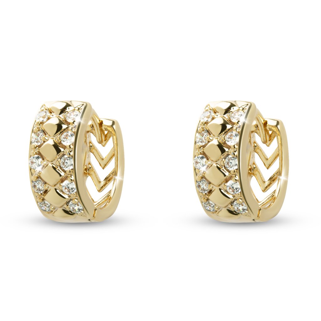 Zlacené naušnice 14k kruh s šipkami a zirkony 1003047
