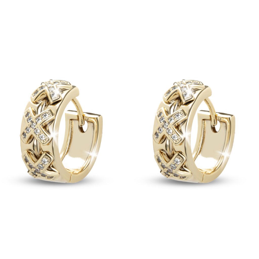 Vylepšete svůj styl těmito úžasnými náušnicemi ze 14karátového zlata s elegantními křížky a třpytivými zirkony. Vysoce kvalitní pozlacení 14karátovým zlatem dodá každému oblečení nádech luxusu a složitý design křížků stylově ukáže vaši víru. Tyto náušnice jsou ideální pro každodenní nošení i zvláštní příležitosti, takže jsou univerzálním doplňkem každé sbírky šperků. Díky krásné kombinaci symbolů a lesku vás tyto náušnice jistě odliší od ostatních. Objednejte si je nyní a obohaťte svou hru s doplňky o jedinečný kousek!