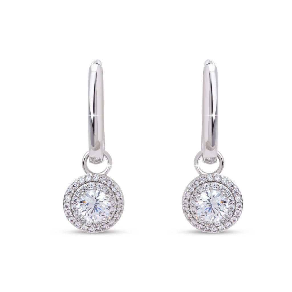 Rhodiované náušnice s dvěma kruhy zirkonů a jedním větším 1003020