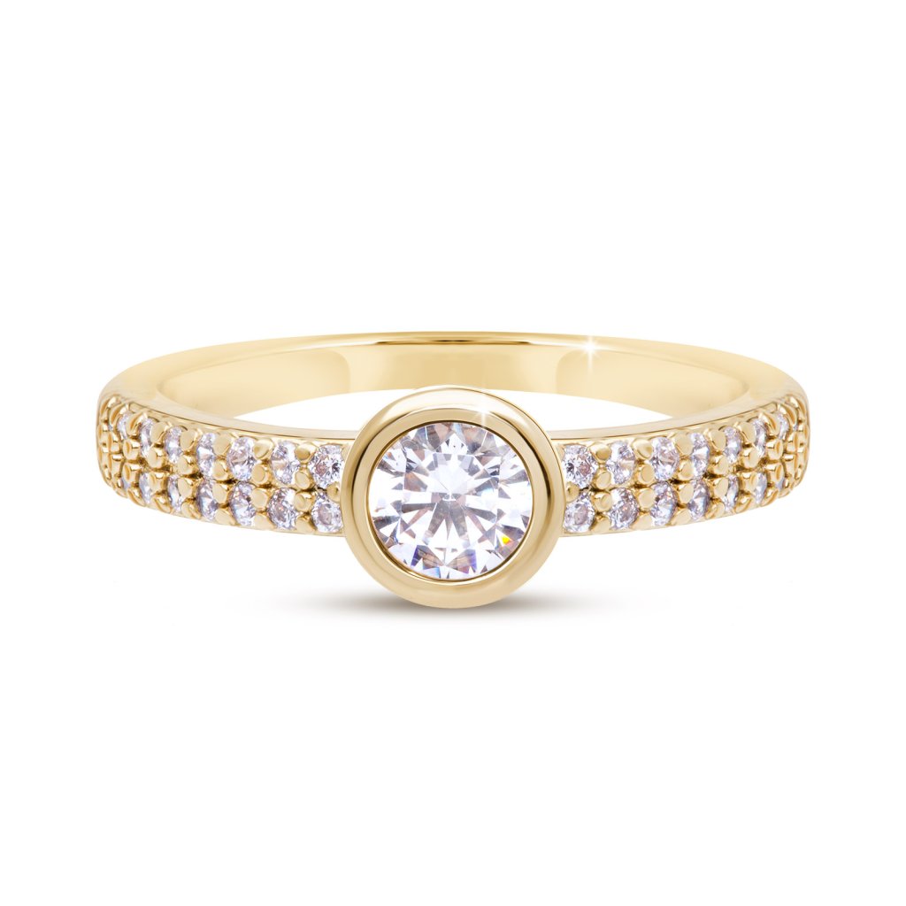 SOFIA 0399 Zlatý prstýnek se zirkonem a řadou malých zirkonů Ellami